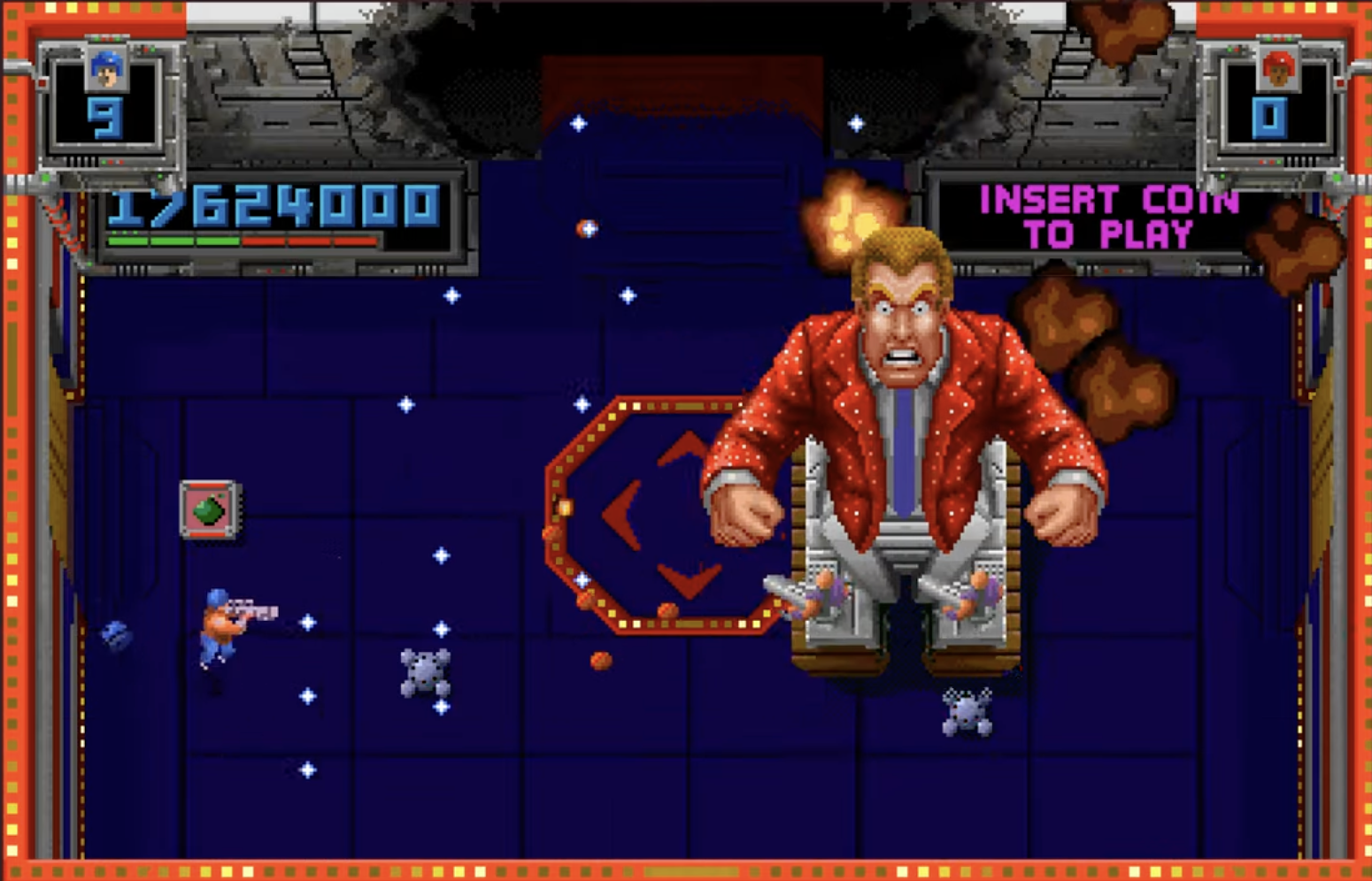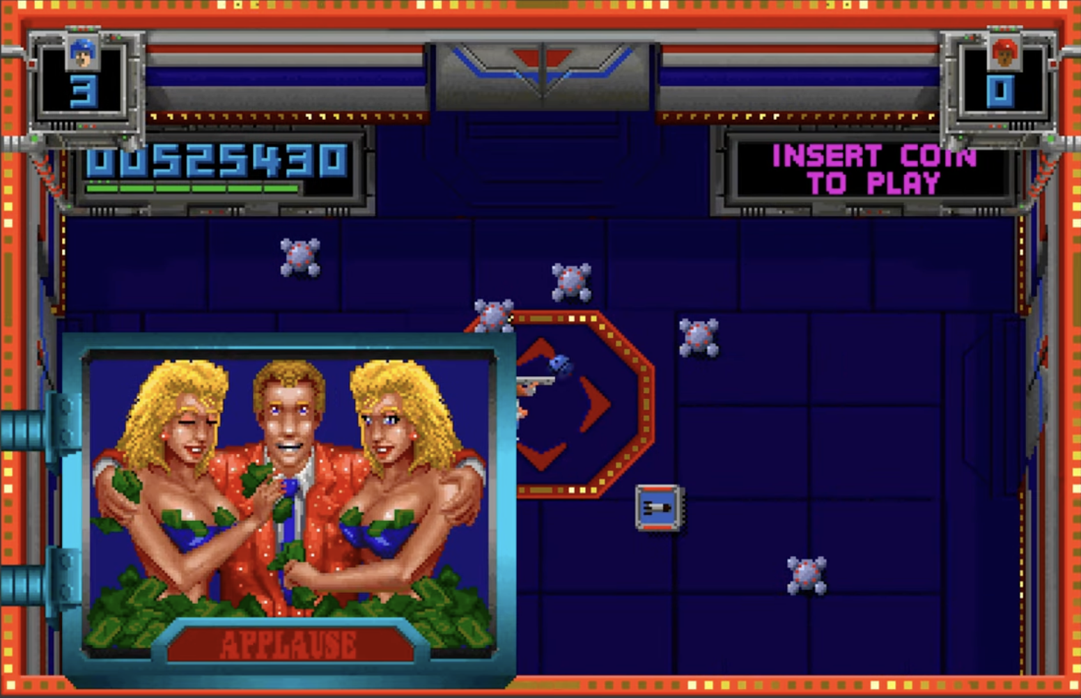 Smash TV, 1990, Williams/Acclaim“Big Money! Big Prizes!” – Why Smash TV Is Peak Violent Game Show Chaos Smash TV didn’t just walk into arcades in 1990; it crash‑landed like a dystopian game show from hell, screaming “Big money! Big prizes! I love it!” at every kid clutching a handful of quarters. Developed by Williams and designed by Eugene Jarvis and Mark Turmell, Smash TV is a twin‑stick arcade shooter that feels like someone mashed up The Running Man, RoboCop, and a mountain of late‑’80s cable TV into one neon‑soaked fever dream. It’s loud, it’s brutal, and it’s a razor‑sharp parody of media violence that also happens to be an absolute blast to play. Smash TV, 1990, Williams/AcclaimArcades, Reaganomics, and the Birth of a Bloodsoaked Game Show By 1990, arcades were deep into the era of excess. Games were faster, louder, and more aggressive, and Williams—fresh off the success of titles like Robotron: 2084 and NARC—was pushing boundaries in violence and style. Smash TV arrived in this climate as a spiritual successor to Robotron, but with a savage TV twist. Jarvis and Turmell built a game where players competed in a futuristic televised bloodsport, mowing down hordes of enemies for cash, cars, and the occasional VCR. The premise: survive wave after wave of contestants and creatures on a live TV show for the promise of fabulous prizes and, maybe, your life. It was satire wrapped in explosions, and it fit perfectly into the era’s fascination with both media excess and ultra‑violence. Smash TV, 1990, Williams/AcclaimThe Running Man: Smash TV’s DNA Is Pure Dystopian Prime Time Smash TV wears its cinematic influences on its blood‑spattered sleeve, and The Running Man (1987) is front and center. Paul Michael Glaser’s film, loosely based on Stephen King’s novel (written under the Richard Bachman pseudonym), centers on a deadly game show where convicts fight for survival on live TV. It’s set in a near‑future dictatorship where entertainment is weaponized to control the masses. Smash TV mirrors this concept almost beat for beat: a televised deathmatch, a charismatic and sinister host, contestants treated as disposable meat, and an audience that’s disturbingly into it. The over‑the‑top prizes—“Toasters! Pleasure domes!”—feel like a darkly comedic riff on the consumerist rewards promised in The Running Man, where survival is the ultimate prize but spectacle is the real product. Jarvis and Turmell have acknowledged that dystopian sci‑fi and media satire were key inspirations, and The Running Man is arguably the clearest cinematic ancestor in the game’s DNA. Smash TV, 1990, Williams/AcclaimRoboCop, Corporate Satire, and the News Break from Hell If The Running Man gave Smash TV its game show skeleton, RoboCop (1987) gave it its savage corporate attitude. Paul Verhoeven’s RoboCop is infamous for its fake commercials and news segments, mocking how corporations and TV networks turn violence into entertainment and advertising. That same tone pulses through Smash TV’s presentation. The game’s host is a grinning, suit‑clad caricature of the sleazy TV executive, and the entire premise leans into the idea that the more violent the show, the better the ratings. RoboCop’s world of Omni Consumer Products—a corporation that literally owns the police—echoes in Smash TV’s gleeful commodification of death. Everything is a prize. Everything is a product. Even your survival is just another ratings bump. The game’s exaggerated gore and absurd rewards feel like they were ripped straight out of a Verhoeven satire, where the joke is that nobody sees the joke anymore. Smash TV, 1990, Williams/AcclaimTwin Sticks, Zero Mercy: How Smash TV Plays Mechanically, Smash TV is a showcase of arcade design distilled to its purest, meanest form. The game uses a dual‑stick control scheme: one joystick to move, one to fire in eight directions, just like Robotron: 2084 before it. On an arcade cabinet, that meant two physical sticks per player, allowing you to run one way while firing in another, constantly weaving through a storm of bullets, grenades, and charging enemies. The screen fills with enemies so quickly that the game becomes a dance of micro‑dodges and reflex shots. Rooms are tight, exits are locked until you clear every enemy, and the difficulty ramps up brutally fast. Smash TV is not interested in fairness so much as intensity. It’s designed to overwhelm you, and in doing so, keeps you feeding it quarters like a contestant bribing the producers for another shot at survival. Smash TV, 1990, Williams/Acclaim“Big Money! Big Prizes!” – The Host as Your Best Worst Friend One of Smash TV’s secret weapons is its host, a grinning, slick-haired TV personality who sounds like he’s been mainlining late‑night infomercials. Between rounds, he pops up with lines like “Big money! Big prizes! I love it!” and “I’d buy that for a dollar!”—the latter a direct quote from RoboCop’s in‑universe sleaze show, neatly tying the inspiration loop together. His exaggerated enthusiasm for your carnage is the game’s dark comedic core. He never acknowledges the horror of what’s happening; to him, you’re just ratings and ad revenue. This host isn’t just flavor text; he’s the embodiment of the game’s critique of media. He represents the TV industry’s willingness to turn anything—pain, death, desperation—into entertainment, as long as the numbers look good. And because this is an arcade game, you’re complicit: the more you play, the longer you keep the show on the air. Smash TV, 1990, Williams/AcclaimPrizes, Consumerism, and the Joke That’s a Little Too Real Smash TV’s prize system is where its satire really sharpens. As you blast through waves of enemies, you collect cash, gold bars, keys, TVs, and other “fabulous” rewards that pop out like piñata guts. The prizes are intentionally mundane—a brand new VCR!—o
